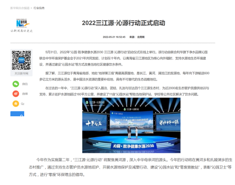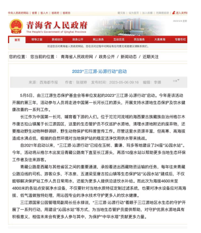 为了更好的践行企业社会责任,联合利华旗下净水品牌沁园联合中华环境保护基金会共同开启“沁园·致净健康水源2030 —— 三江源·沁源行动”,行动以十年为期,自2021年行动发起以来,在三江源国家公园管理局的大力支持下,围绕“守护净土”、“净美家乡”、“焕新传统”三个板块开展多项行动,助力三江源生态环境建设,促进家庭和社区饮水健康,助力实现人与自然和谐相处的长远愿景